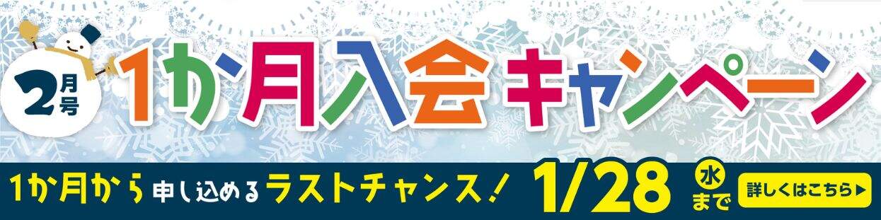 - さらに通常2か月以上からのご入会のところ今だけ1か月だけの入会OK!